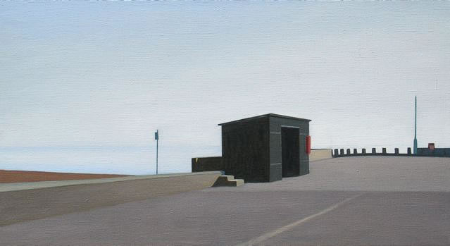 Dorset's West Bay and the neighbouring island of Portland have become leitmotifs in Lowery's practice. The marine light which is pervasive in all his work suggests the sea, while describing the forms that exist for the most part at its edge; the piers and jetties, ware­houses, seafront houses, cliffs, shingle, concrete sea breakers, and even an airport runway on Portland. With the elegance and silence of modernist design, he composes still lives from light industrial subjects to create a distinctive beauty, empty of human form but largely focused on what is man-made.