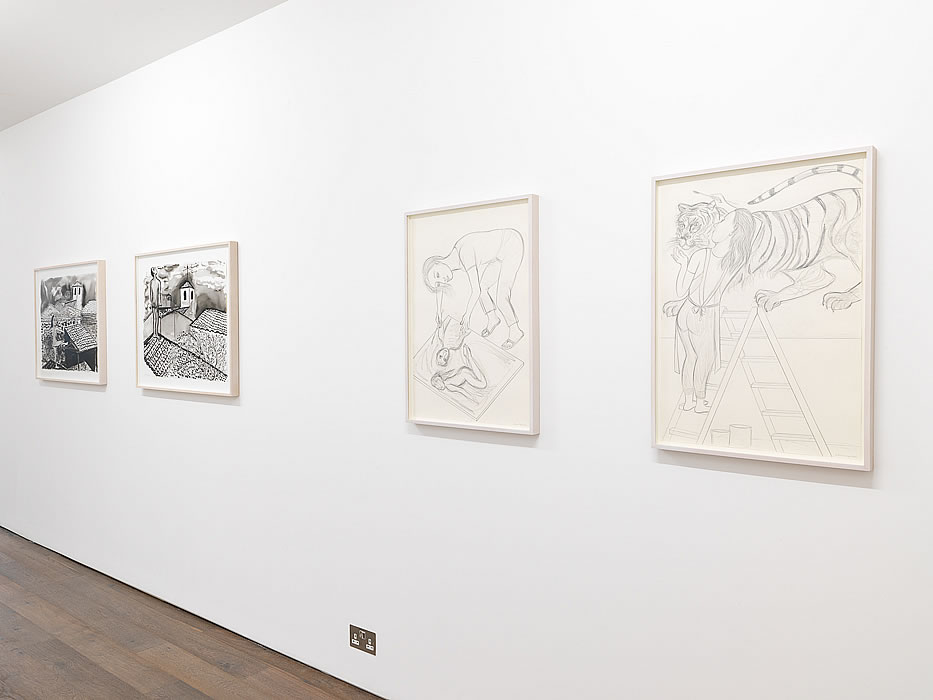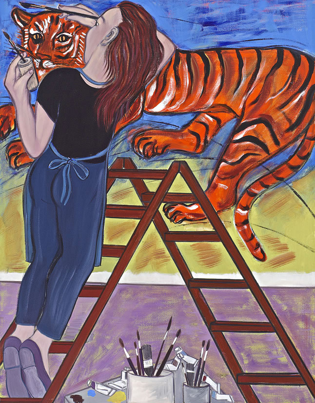 The exuberance and overall energy in these works underlines the assertiveness of an artist reveling in her ability to swiftly pin down an image with little reworking. Cooper has shed her hesitations along with the colourful attributes with which she used to decorate her figures. She has found a strong, individual, iconic language in which to transmit her distinctively female experience. We are reminded too that as a colourist, Cooper retains her expressionist roots and is never shy of the emotional charge which pure colour can import to a work. If the self-proclaiming element is an overt aspect of these 'studio' paintings, they also present us with surprises – a side of Cooper's art that never fails to enthral.