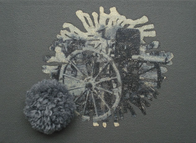 Helen MacAlister makes paintings in which she appropriates particular, intriguing, found objects. Her evocative surfaces are intensely encoded with thought and connection, with observation and wit, allowing her to examine the culture which surrounds her.