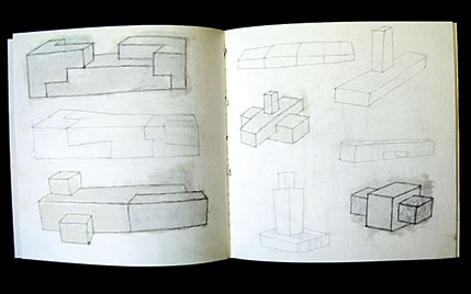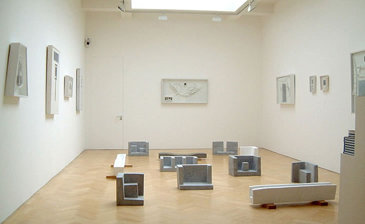 Altar, Passage, and Chaumer each have implied architectural connections. Less organic, more formally geometric, they are to do with decision-making concerning the visual qualities of measure and proportion, of how space is shaped and formed by an object. These powerful, floor-based stone sculptures have a universal, timeless frame of reference. Amongst other ideas, they are based on sketchbooks and drawings he keeps of things that interest him from extensive travels to Greece, India, Japan and Central America.