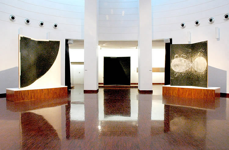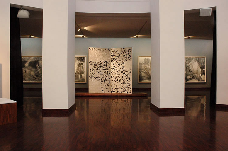 Nel has also paid successive visits to observatories on the 13,000-foot high volcano, Mauna Kea, on the big island of Hawaii, where the project's land-based observations are made with the Subaru telescope. These observations are correlated with data received for the project by the space-based Hubble telescope. The work of the team is to make sense of, and interpret, the complex array of data in relation to what they already know about galaxy formation, large scale structures, the mapping of dark matter, halo-modeling, stellar dust and the lensing of light. In Lost Light the primary focus concerns his engagement with both the ideas and images generated by the Cosmos Project. His large folding screens refer to the evanescent images approaching us from deep space. These fleeting images are perceived and captured in a more permanent form, and to achieve this, Nel uses salt and 540 million year-old black carboniferous dust as his chosen primordial substances. While the Lost Light works constitute the main focus of the exhibition, Nel's large-scale drawings from two other fascinating projects - In the Presence of Leaves and Status of Dust - are also on view. Nel is as much a collector as he is an artist. Over a number of years now, he has made expeditions across the Pacific to remote islands, sometimes in the footsteps of Cook, and has developed a deep understanding of the people of these regions, alongside their strategies to conserve their way of life and to deal with the challenges of globalization. Nel's collection of objects from Irian Jaya, Papua New Guinea and the Solomons are shown as a companion exhibition to Lost Light, under the title of Oceanic Values: currencies of the Pacific. An Associate Professor of Fine Art at the University of the Witwatersrand, Nel's highly perceptive and creatively intelligent work is a rich source of information about important aspects of the world and the universe. The content of his art makes for a unique contribution to South Africa, where his work is on show for the first time in over seven years.