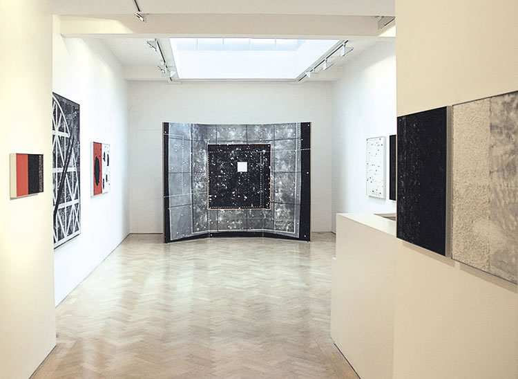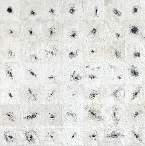 in The Brilliance of Darkness Karel Nel recognizes and highlights a new insight to the cosmos above us, signalling that the darkness of space is central to both the human spirit and to our emotional health - indeed, to our very existence. The salts and carboniferous dusts he uses on the surfaces of his work were expelled in the distant past from the brilliant stars we see lighting up the night sky.