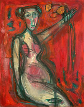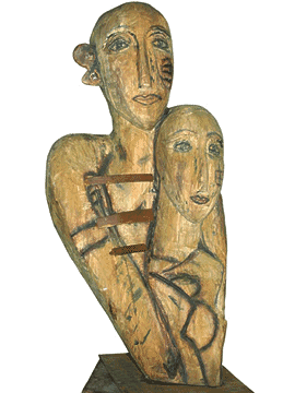 The work for Margaret Hunter's new exhibition emerges from anunusually concentrated period of creativity. A dynamic body of drawings signals a new mood in her richly expressive paintings and in the deeply incised, rubbed and carved wooden sculptures. Apart from the abiding sense of energy contained within all her female figures, there is now a shift towards a more reflective and tender mode.