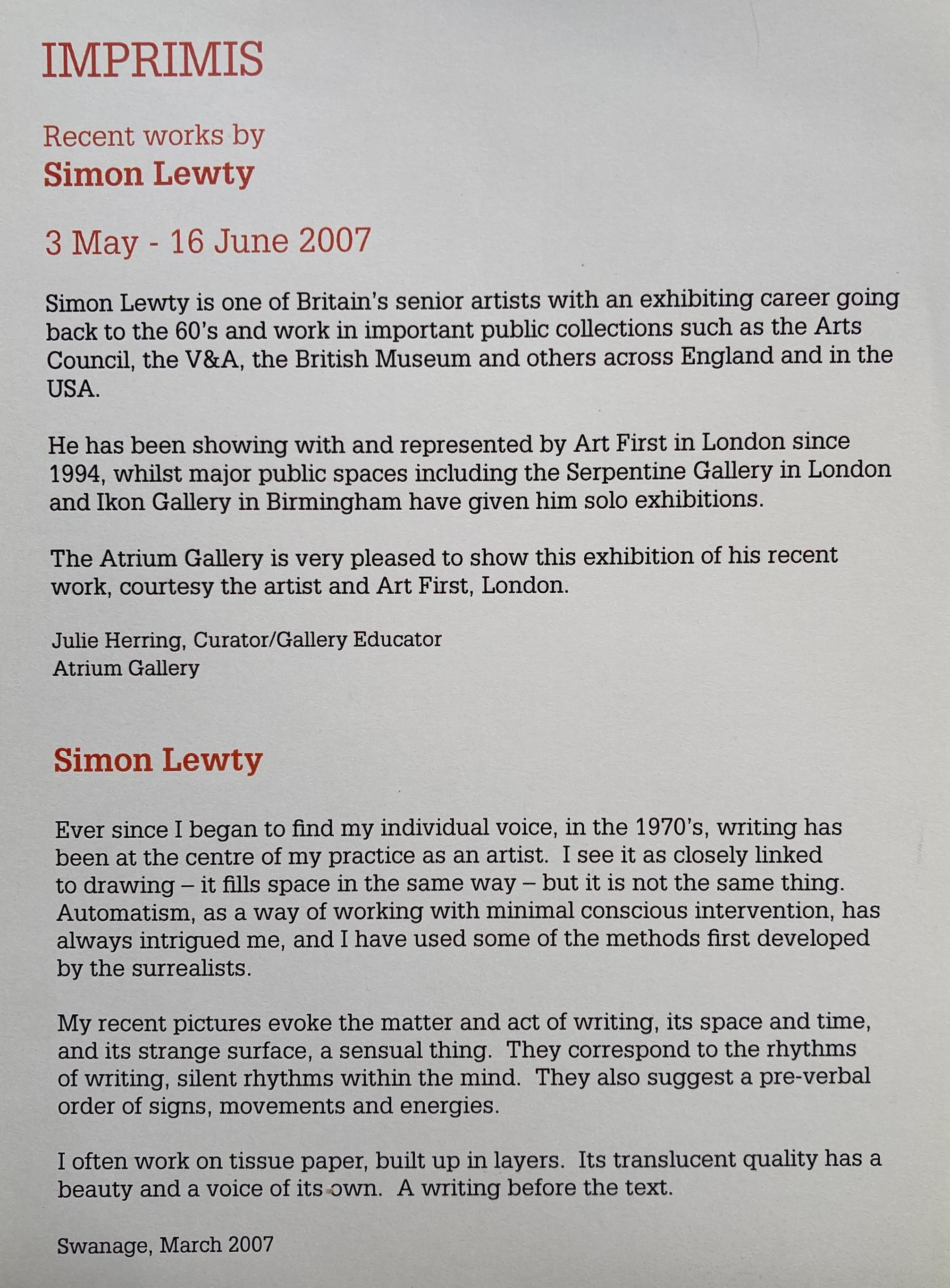 Recent works by Simon Lewty