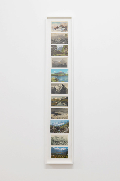 Morley takes Frank Capra’s 1937 film Lost Horizons as a lodestone. In his introductory essay for the exhibition catalogue, the writer Ryan Bishop tells us: “In Morley’s stunningly varied monochromatic vision, the Lost Horizon proves lost and found at every turn, every fold, every surface. The paintings, scrolls, screen, video, postcards with text, word lists, watercolours and book paintings offer negative spaces for critically thinking what it means… to lose a horizon for good and ill. America and Asia as visually constructed imaginaries vanish down the perspectival hole Morley erases, re-invokes and re-visions”.