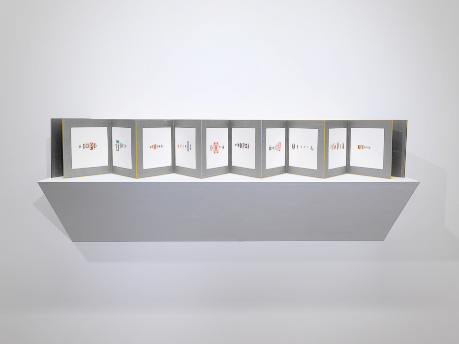The dream of a perfect society certainly didn’t originate with Thomas More’s famous work of 1516. He just gave it another name: Utopia. It’s a dream that is probably as old a mankind itself and it has gone by many names. In one of my works for this exhibition I’ve listed 39, but there are certainly more. They can be found in many different cultures, contexts and periods – expressed in forms as diverse as ancient myths, religions, political ideologies, fiction, Hollywood movies, and the virtual realities of cyberspace.