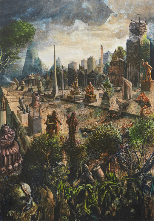 This new body of work engages with the concept of discernable metaphysical ages – from the splendor of the golden age to the decay and chaos of the silver age – a rich topic explored throughout post-renaissance western art, and taken up here with Price's customary wit and bold compositional vision.