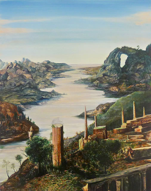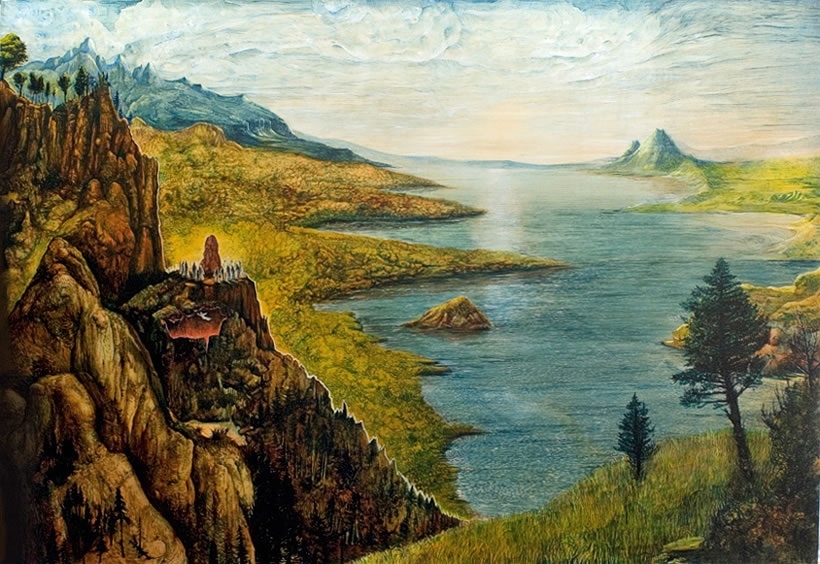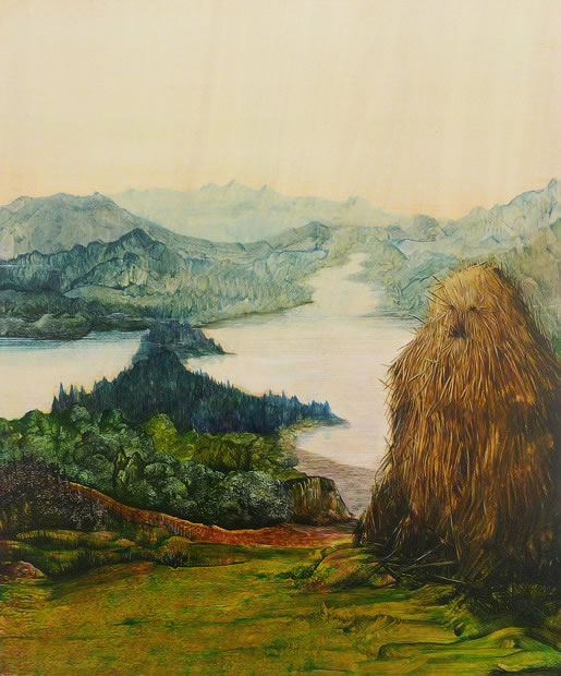 The gothic-pastoral landscapes which David Price paints so meticulously reveal scenes populated by characters, be they demons or saints, set in a luminous world of clearly defined narrative elements. These become recognizable yet remain ambiguous or even nonsensical.