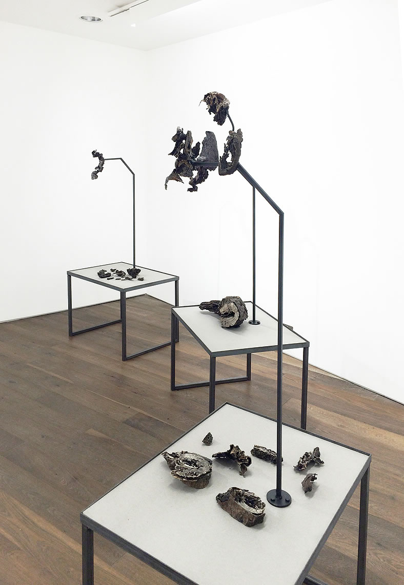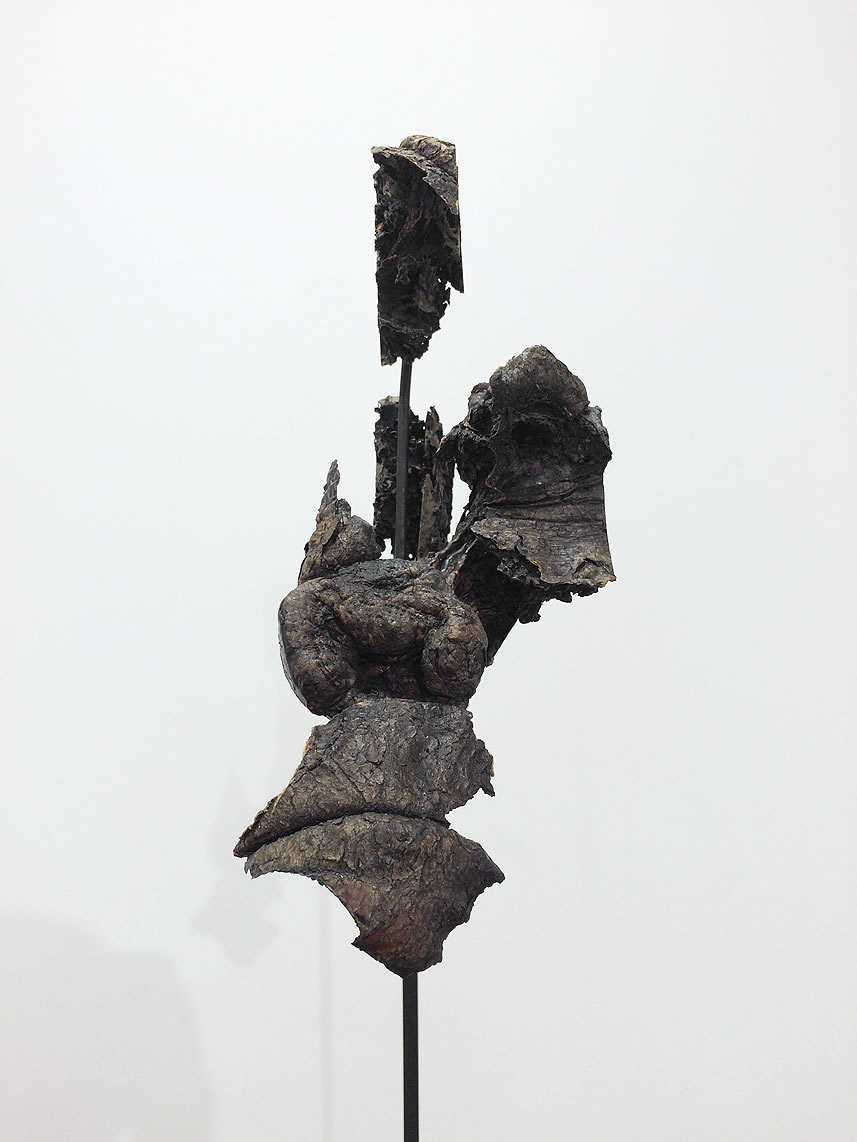 Douglas White also works intuitively with his chosen materials, though in a more conscious way – permitting the stubborn boundaries of his source material to remain, and even to guide his hand, but also extracting and imposing new qualities into the end form – creating evocative sculptural works that play on our anthropomorphising instincts.